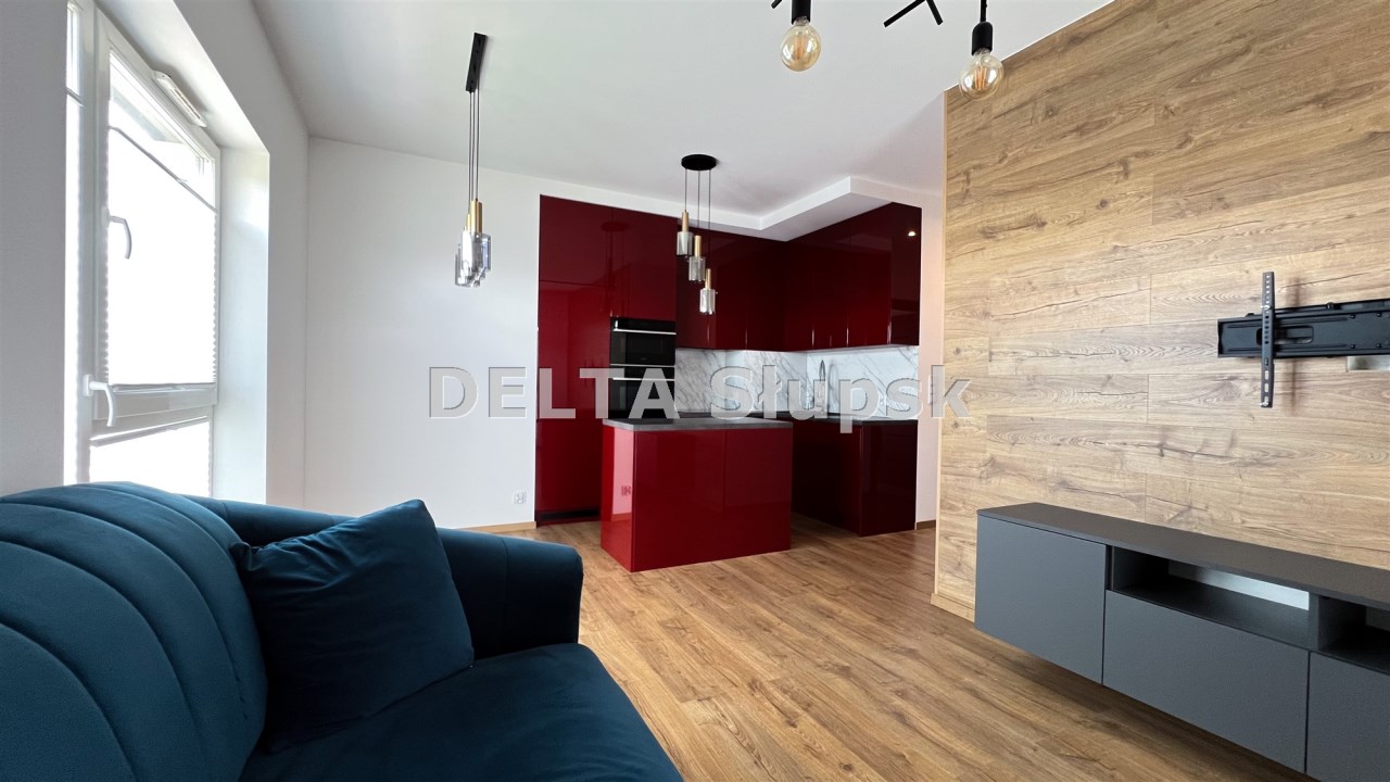 Biuro Nieruchomości DELTA oferuje do sprzedaży w pełni umeblowane i wykończone z zachowaniem trendów nowoczesnego designe mieszkanie na drugim piętrze budynku z 2020 roku.